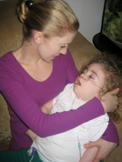 Sorry I've been quiet these past few days. I've been having a rough week emotionally. Kaitlyn is doing okay but the disease is progressing. Her seizures have gotten more frequent and are causing her oxygen concentration to go down too, which they weren't really doing before. She is also getting more dependent on the oxygen. When we take the nasal cannula off of her face to put her shirt on, her oxygen will dip within a minute or so into the low 90s. Not a bad number at all but a week or so ago it would take at least 15 minutes for her oxygen to start to dip.